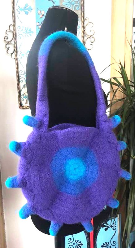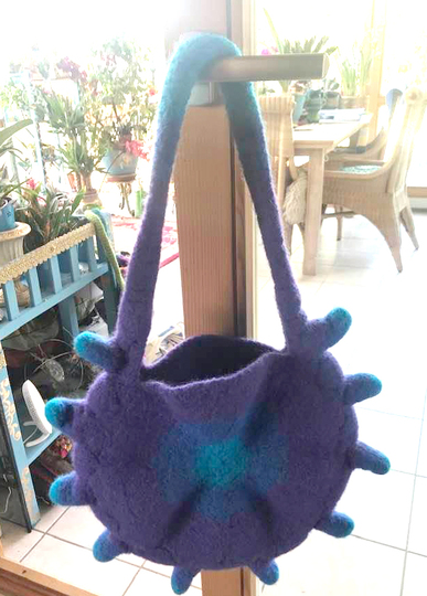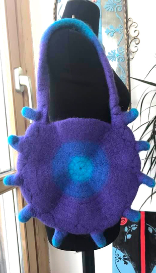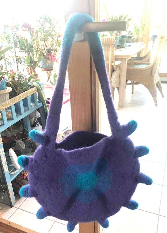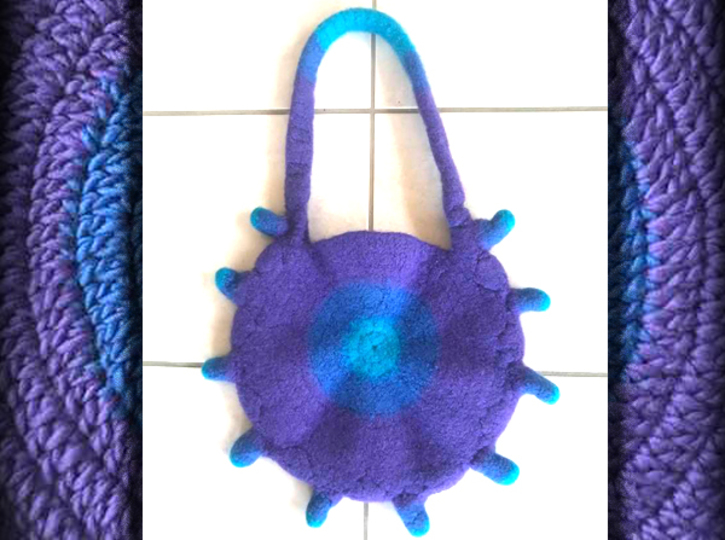 Petra Perle Filztasche NIPPELchen ist eine lustige und auffällige Schultertasche die Tasche selber ungefähr ist so groß wie eine LP