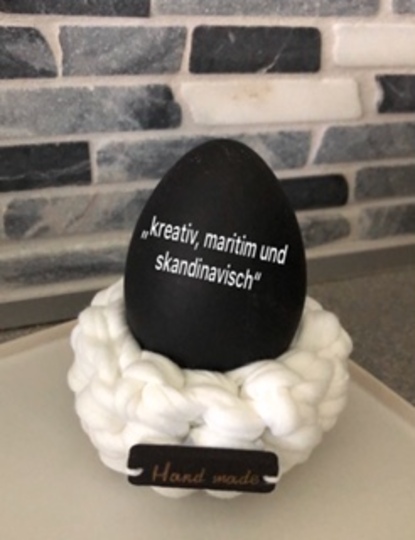 Der Eierbecher aus Textilgarn ist passgenau für ein handelsübliches Ei.