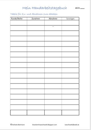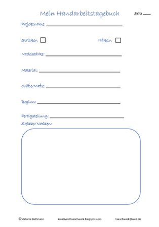 Alle Seiten von dem Handarbeits-Tagebuch könnt Ihr einzeln ausdrucken.