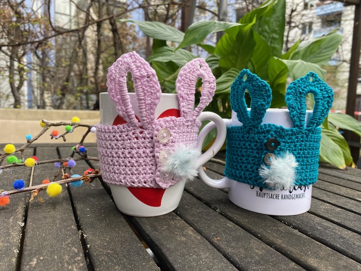 Ostern wird bunt und fröhlich mit den süßen gehäkelten Hasen-Tassenwärmern. Die sind übrigens nicht nur zu Ostern eine tolle Deko sondern auch das ganze Jahr über für alle Bunnies und Fans von süßen Dingen. Praktisch sind sie dabei auch noch, denn sie halten den Kaffee oder Tee in der Tasse länger warm und verhindern, dass man sich die Finger verbrüht.
