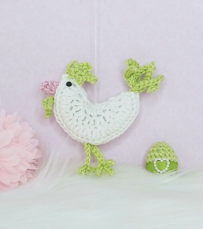 Häkelanleitung für ein zuckersüßes Huhn gehäkelt aus festen Maschen und Stäbchen.