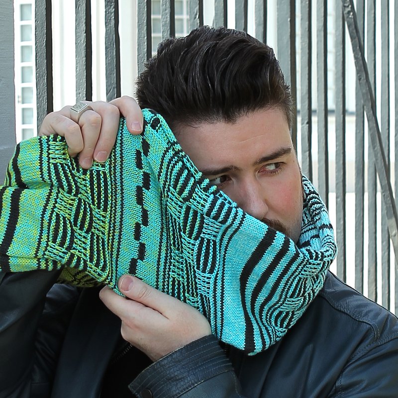 Dieser Loop/Schal wir in Runden gestrickt. Durch die Hebemaschen und die Unterschiedliche textur der Rechten und Linken Maschen ergibt sich ein toller Effekt.