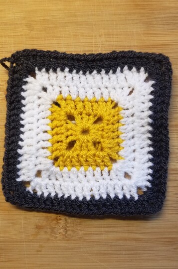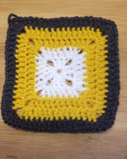 3 farben in einem dk garn der ein granny square mit 13 x13 cm misst bei 5 reihen