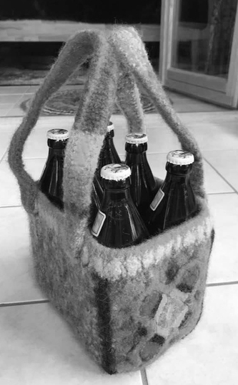 Meine SIXPÄCK Tasche aus Filzwolle wiegt fertig 370 gr und ist so groß, dass 6 Bierflaschen à 500ml darin Platz haben + so bequem zu tragen sind.
