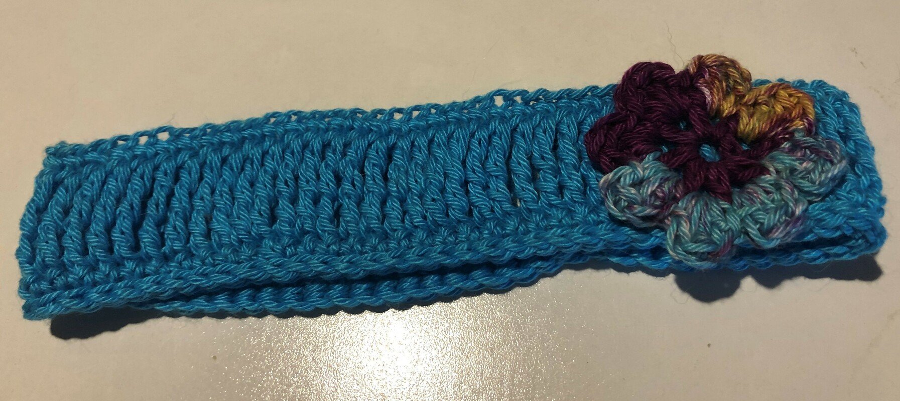 Dieses niedliche Stirnband ist im Nu gehäkelt und man benötigt nur ein paar Garnreste.