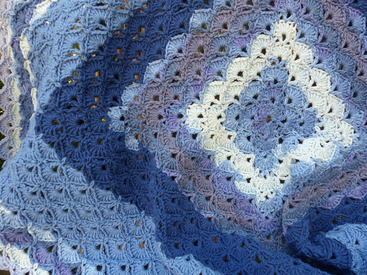 Wie ein großes Granny wird diese Decke von der Mitte aus begonnen. Von der Größe kann diese Decke an die individuellen Wünsche angepasst werden.