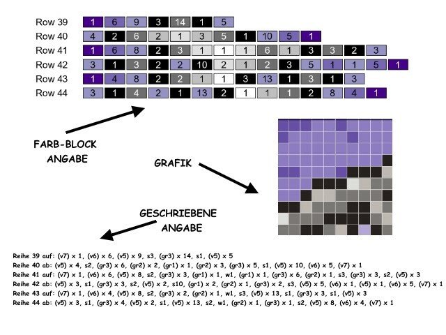 -farbige Zahlen-Blöcke für jede Zeile für C2C-Technik
