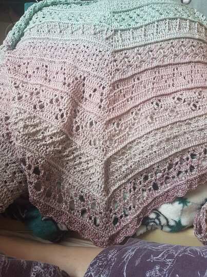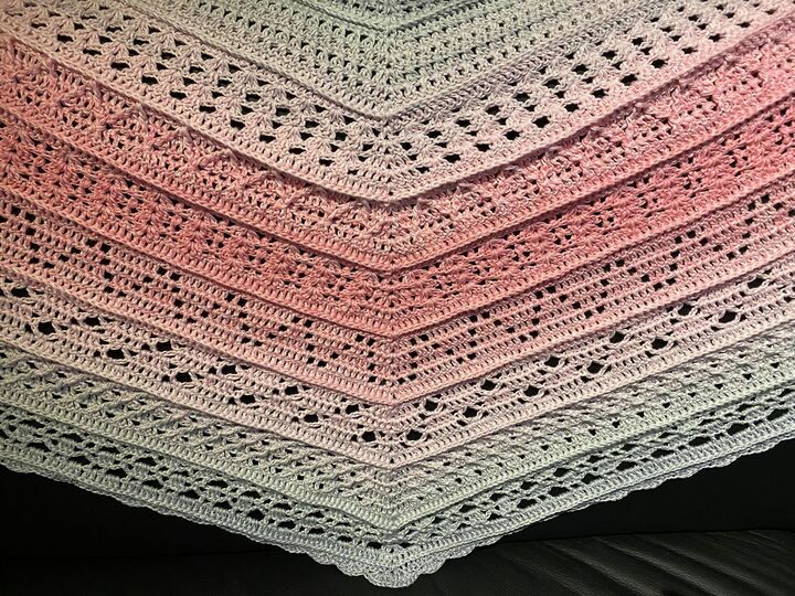 Ab der Mitte ist das Tuch nicht mehr symmetrisch und das Muster stimmt einfach nicht mehr.