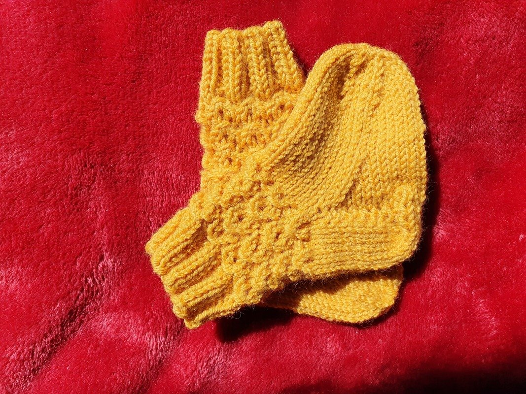 Da ich sehr gerne Babysachen stricke, habe ich immer Wollreste von Babywolle in allen Farben übrig, aus denen ich dann meist kleine kuschelige Babysöckchen arbeite. Sie sind Ruck zuck gestrickt und immer ein hübsches gern gesehenes Geschenk.