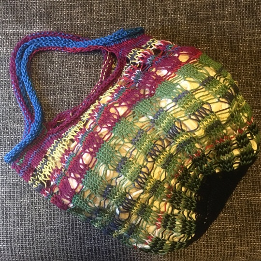 Die Tasche kann auch aus Baumwollresten gestrickt werden.