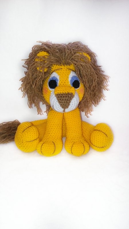 Häkelanleitung von Jack der löwe: Seine endgültigen Abmessungen sind ungefähr 22 cm.