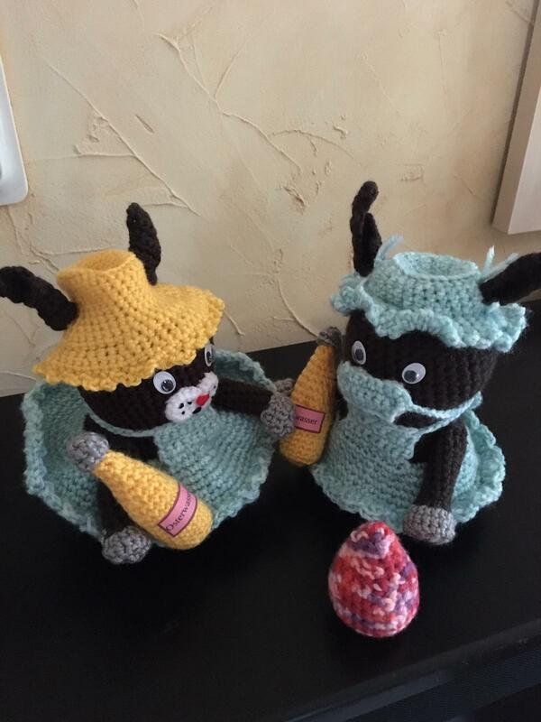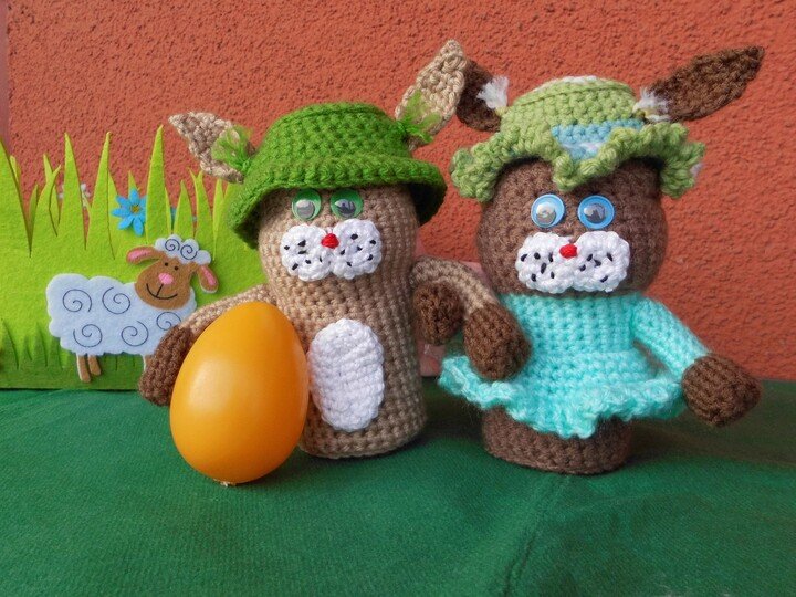 Schnell noch zwei Häschen häkeln,die man sogar mit Süßem füllen kann?Hier ist die Anleitung für die Hasen-Dame, Herr Hase und dem Osterei.Der Vorteil,man wird gleich ein paar Wollreste los.