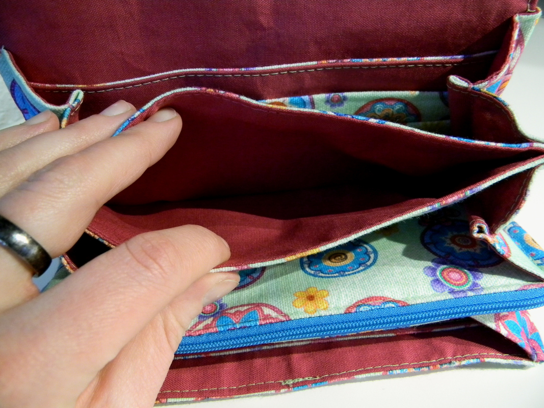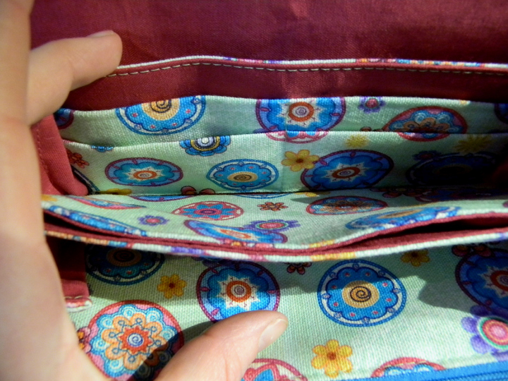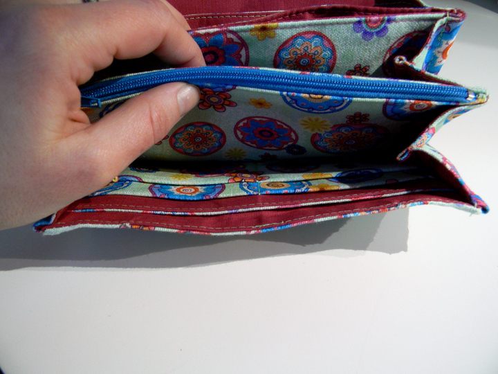 Dieses Portemonnaie hält viel Platz und einige Fächer bereit. Insgesamt acht Kartenfächer (aufgeteilt in 2 x 4) und dahinter je ein großes Fach, ein Kleingeldfach mit Reißverschluss, ein weiteres Steckfach und drei weitere Fächer.