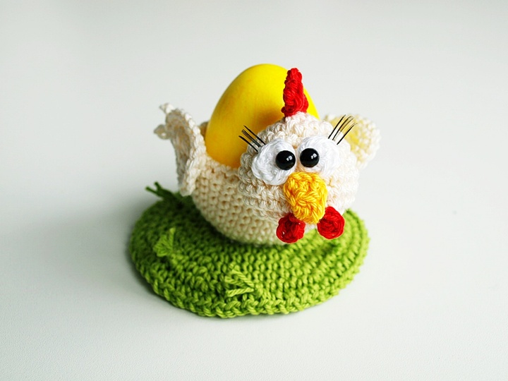 Der Verkauf des fertigen Eierwärmers z.B. in Läden, auf Märkten und/oder im Internet ist in kleiner Auflage gestattet. Im Internet ist der Hinweis "nach Anleitung von Frollein Häkelfein" sichtbar anzugeben!