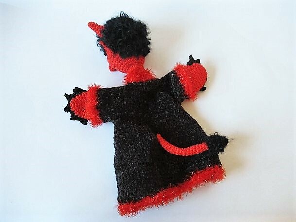 Die Handpuppe ist eher für kleinere Hände gedacht, damit die Kinder sie gut bespielen können. Wenn du sie breiter haben möchtest, häkle einfach bei Vorder- und Rückteil ein paar Maschen mehr in der Breite. Die Zu- bzw. Abnahmen und die Anzahl der Reihen verändern sich dabei nicht.
