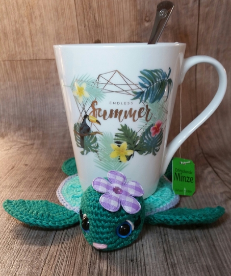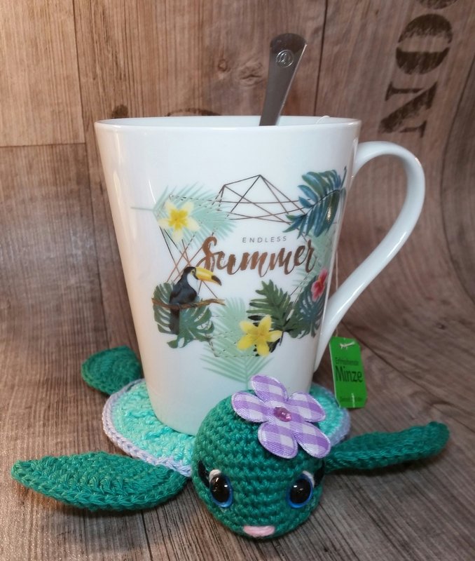 Die kleine Meeresschildkröte Elsa ist ein Untersetzer für deine Lieblingstasse.