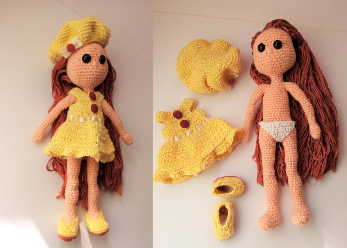 * Für die Haare habe ich 100 % Baumwolle, 120 m / 50 g verwendet.