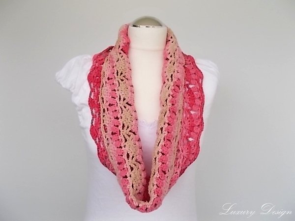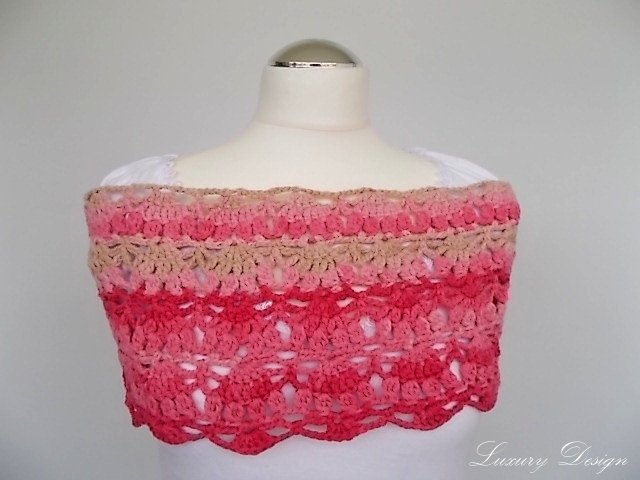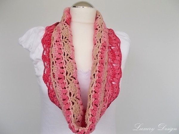 Ein topmodischer Loop oder Schulterschal ,ganz wie Sie wollen ,er lässt sich schön um die Schultern drapieren und wärmt so die Schultern bei der nächsten Gartenparty oder Sie tragen ihn als Loop um den Hals drapiert oder als Blickfang locker um den Hals gelegt.