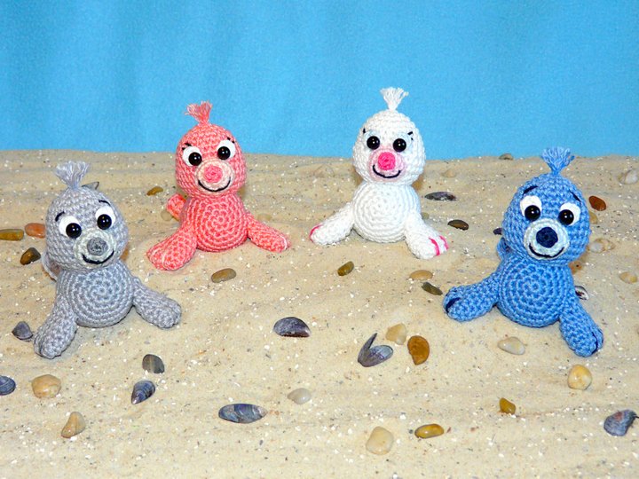Diese kleinen Seerobben tummeln sich gerne im Wasser, sie sind aber auch sehr gerne am Strand auf dem warmen Sand :) Mit ihren süßen Gesichtern verzaubern sie jeden der sie sieht. Häkelt euch die kleinen in euren Lieblingsfarben und macht euch oder euren Liebsten eine große Freude. Die süßen Robben sind eine tolle Deko, aber auch als Schlüsselanhänger, Taschenbaumler oder Tierchen für ein Mobile sind sie perfekt geeignet.