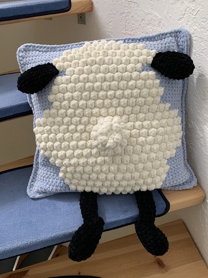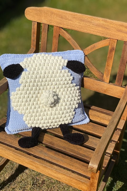 Du bekommst die Häkel-Anleitung für die Kissenplatte Schäfchen und die Rückseite.