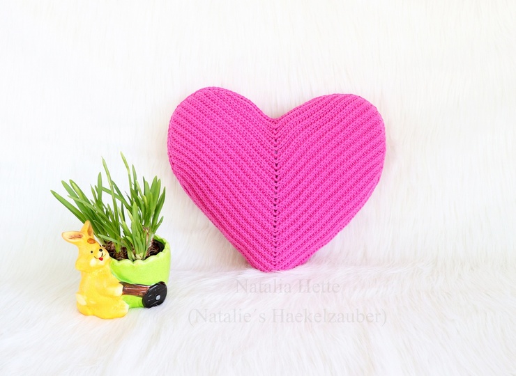 Diese Häkelanleitung besteht aus bebilderter Anleitung zum Häkeln von zwei Kissen in der Form von Herzen. Diese Kissen sind sehr schnell und leicht zu häkeln und sind in nur ca. 4-5 Stunden (für jedes Kissen) fertig, so dass sie auch als Geschenk für Freunde und Verwande geeinget sind. Die Anleitung ist für Anfänger mit Vorkenntnissen geeignet. Diese Kissen kann man zu einer Komposition zusammennähen oder getrennt voneinander verwenden.