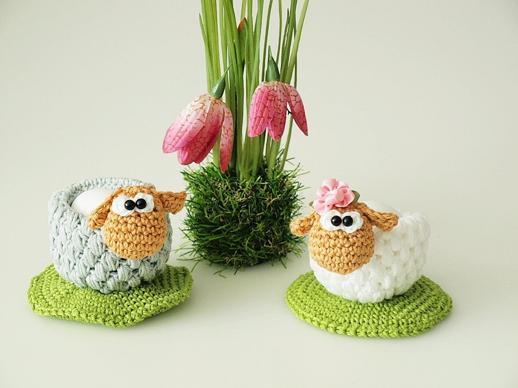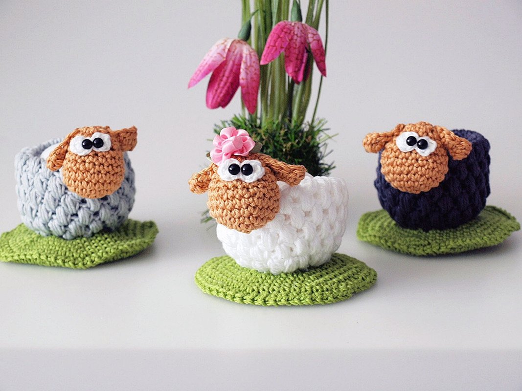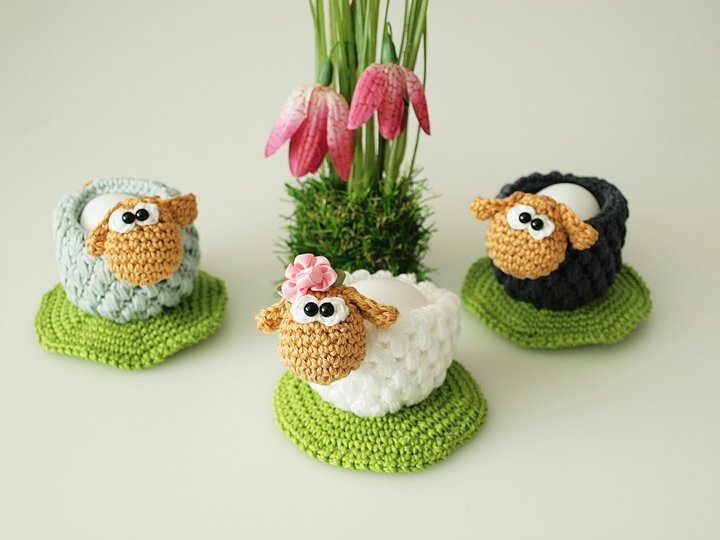 Häkelanleitung für Eierbecher-Schafe