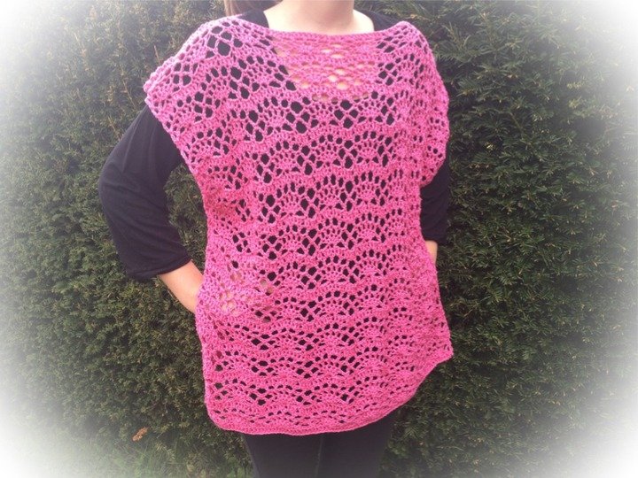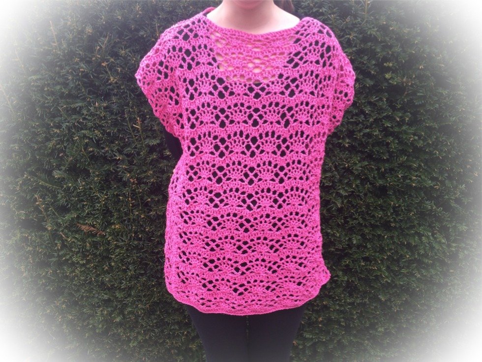 Das einfache, aber dekorative Muster besteht aus Luftmaschen, festen Maschen, Stäbchen und Doppelstäbchen.