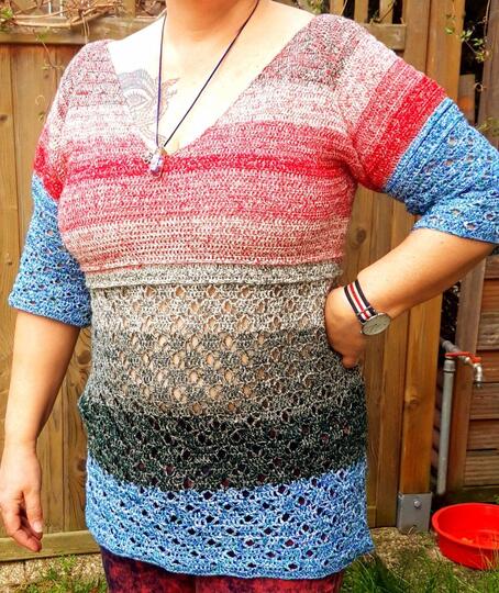 Beim vorgestellten Produkt handelt es sich NICHT um das fertig gehäkelte Kleidungsstück, sondern um eine Anleitung in Schriftform mit Häkelschrift, um dieses Kleidungsstück selbst zu häkeln.