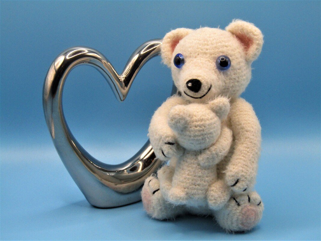 Größe Babybär mit Woll Butt Maya gehäkelt, bis zu den Ohrspitzen 9 cm