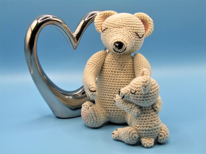 Größe Mamabär mit Baumwollgarn gehäkelt, bis zu den Ohrspitzen 14 cm