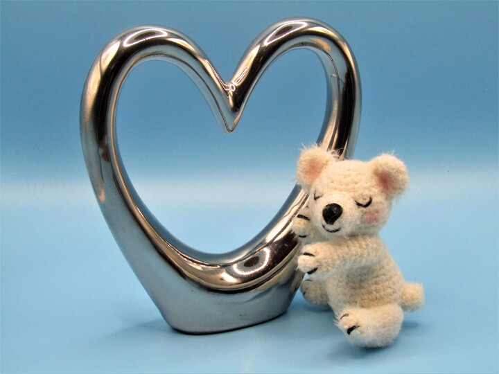 Größe Babybär mit Baumwollgarn gehäkelt, bis zu den Ohrspitzen 8 cm