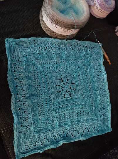 Diese schöne quadratische Decke ist mit liebevollen Details ein wirklicher HIngucker und kann sehr leicht nachgearbeitet werden.
