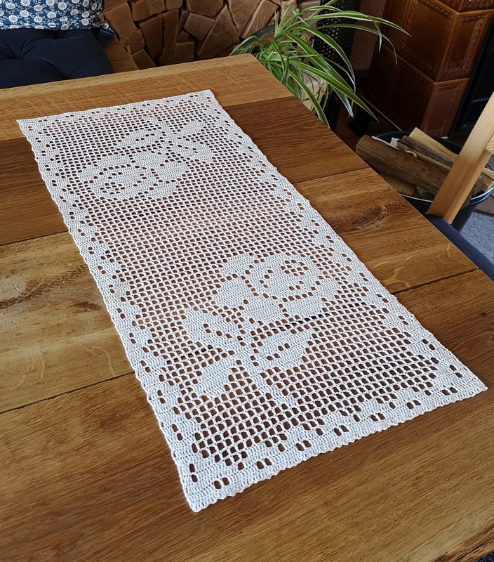 Die Anleitung ist für einen Tischläufer in Filethäkelarbeit.