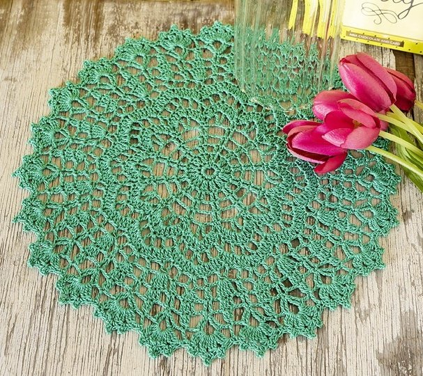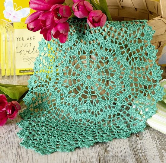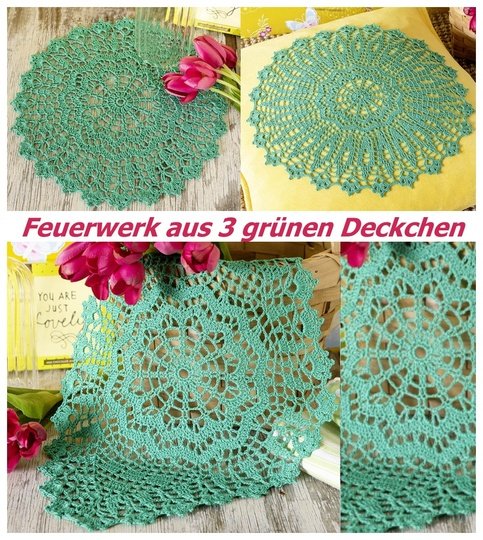 ca. jeweils 30 g Baumwollgarn ESSENTIALS CROCHET in Grün von RICO DESIGN (LL 280 m/ 50 g), 1 PRYM Häkelnadel Nr. 1,75–2.