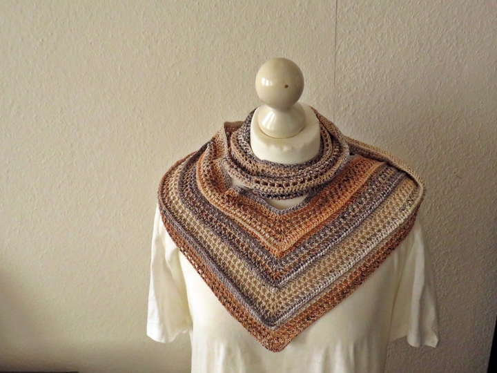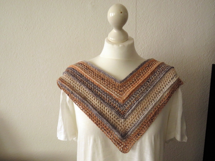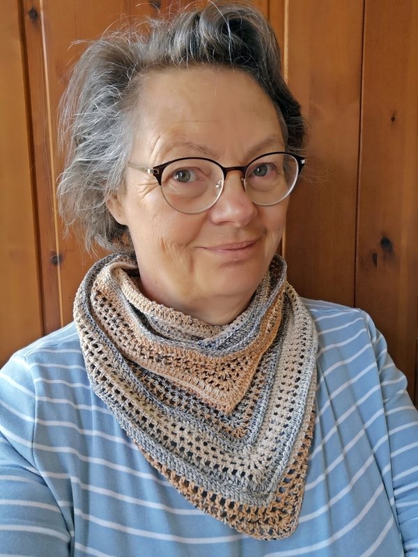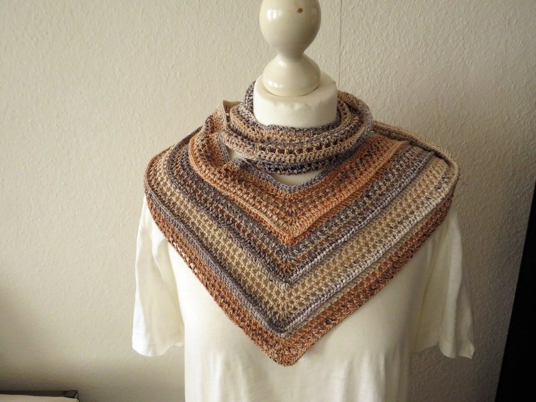 Leichtes Sommergarn aus Baumwolle und eine ungewöhnliche Konstruktion machen den Loop Melanie zu etwas ganz besonderem. Loops werden um den Hals geschlungen, dieser hier 2 mal, doch er hat auch eine Spitze wie sonst nur Dreieckstücher.