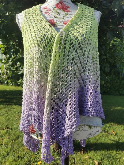 Wir haben mit Farbverlaufsgarnen getestet. Ab einer Lauflänge von 750m bekommt ihr ein angenehm großes Tuch.