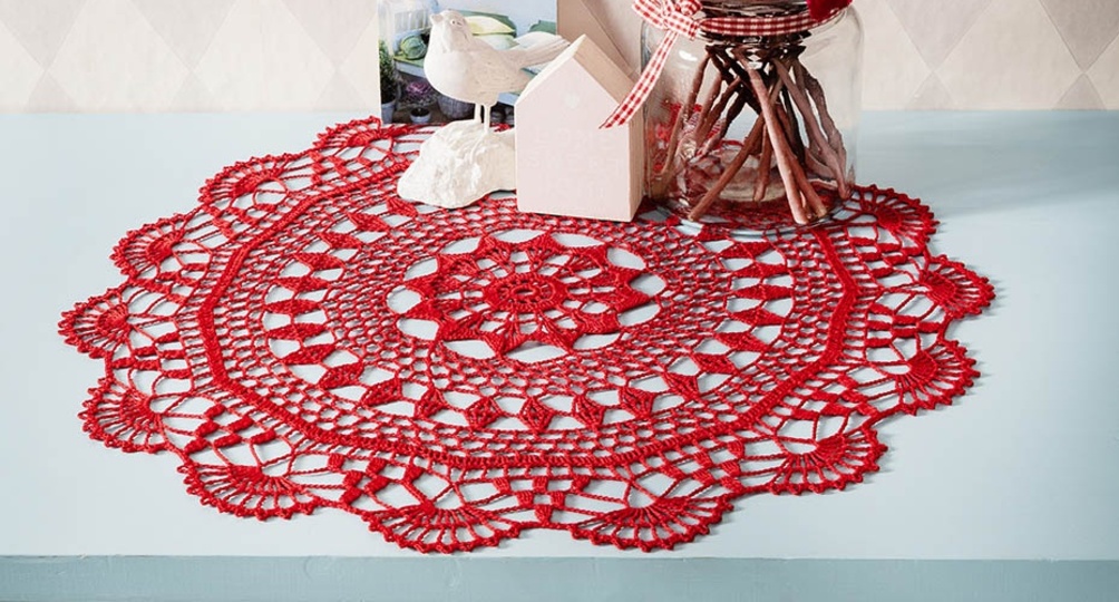 je Modell ca. 50 g Baumwollgarn DIANA UNI 10 in Rot (B.-Nr. 79-22906) von WOLL-BUTT über BUTTINETTE (LL 560 m/ 100 g), 1 PRYM Häkelnadel Nr. 1,5–1,75.