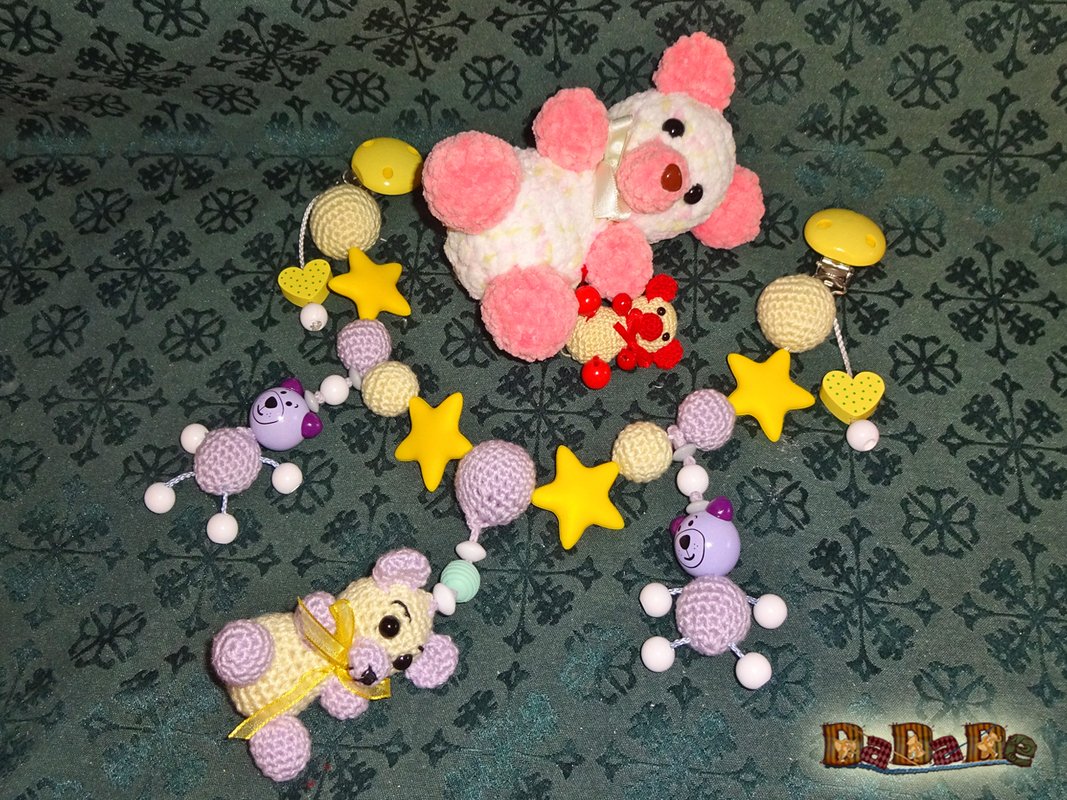 Mit den einzelnen Teilen lässt sich außer der Kinderwagenkette, auch Schnullerketten, oder