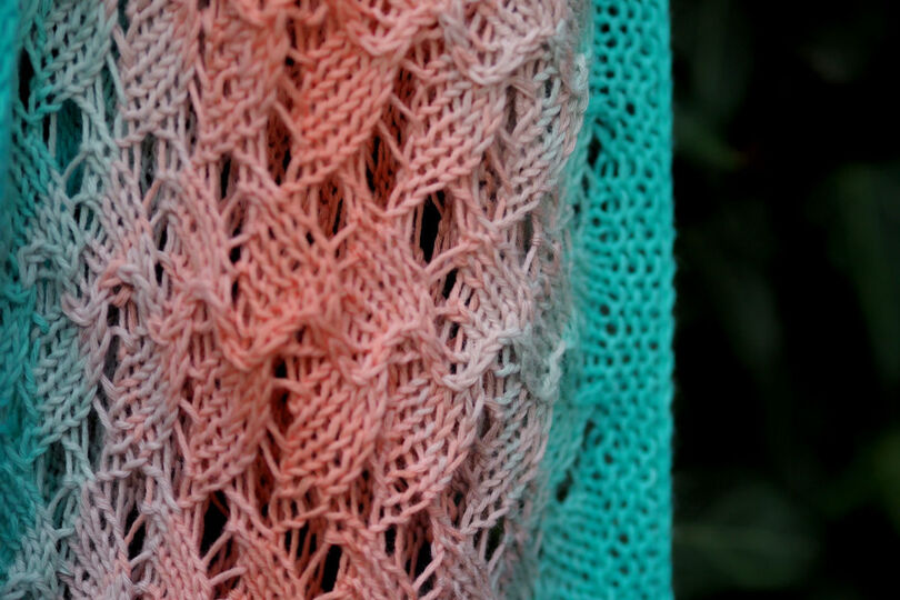 Idas Loop wird in Runden gestrickt. Dafür müssen viele Maschen auf einmal angeschlagen werden. Der Anschlag sollte dafür besonders elastisch oder locker gearbeitet werden. Begonnen wird mit einem Bündchen, dann folgen das Muster und zum Abschluss erneut das Bündchen. Das Ida-Muster enthält viele rechte Maschen und strickt sich dementsprechend flott herunter. Das Design ist perfekt geeignet um mit verschiedenen Materialien, Garnen und Strukturen zu experimentieren.