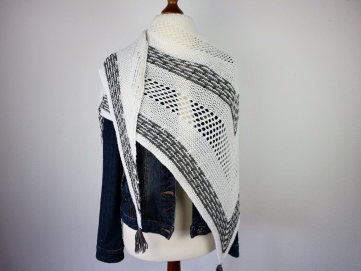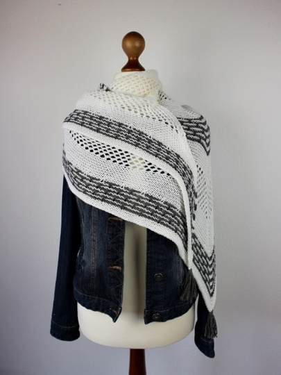 Verschiedene Muster, eine Kontrasfarbe und Stricksspaß pur! Das erwartet Euch bei dem Tuch Keyla.
