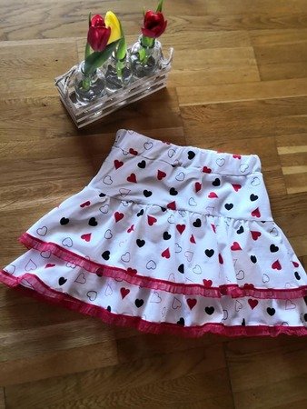 Der Rock hat unten eine Rüsche und ebenso am Mittelteil, was ihm einen besonderen Hingucker gibt.
