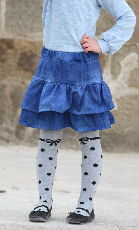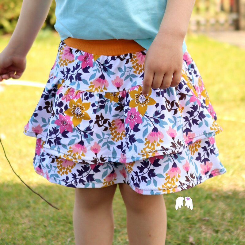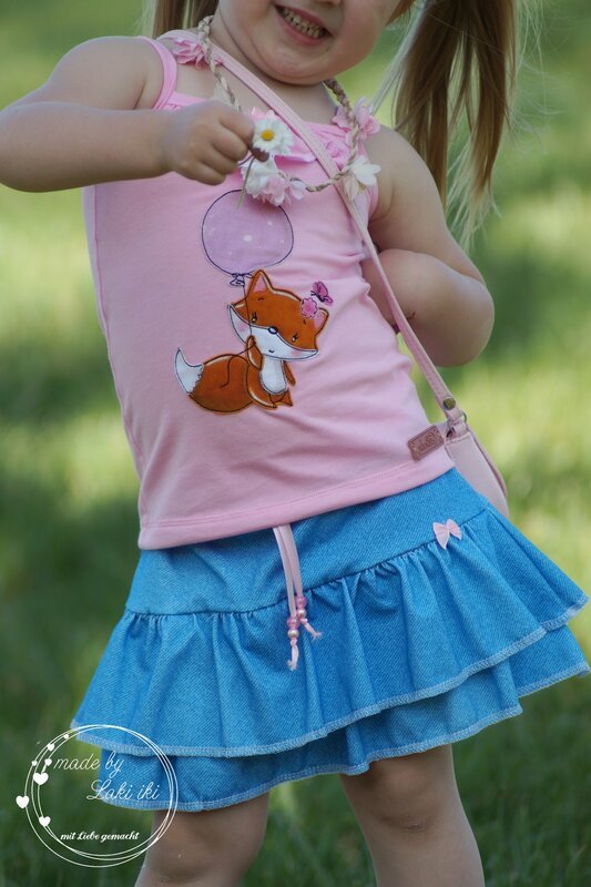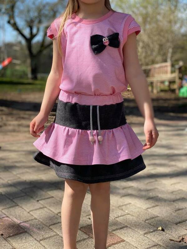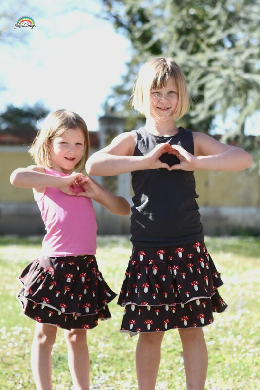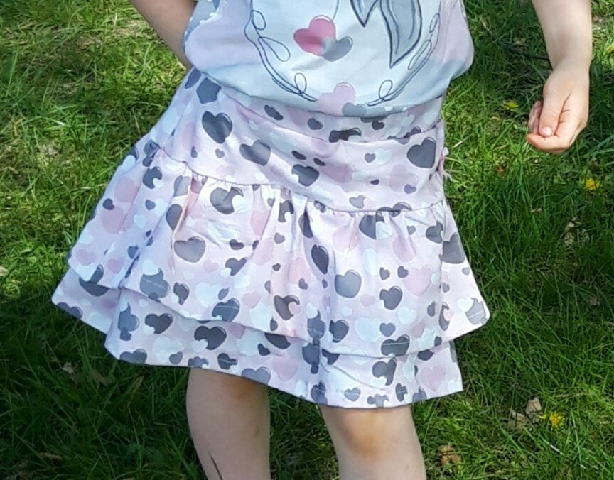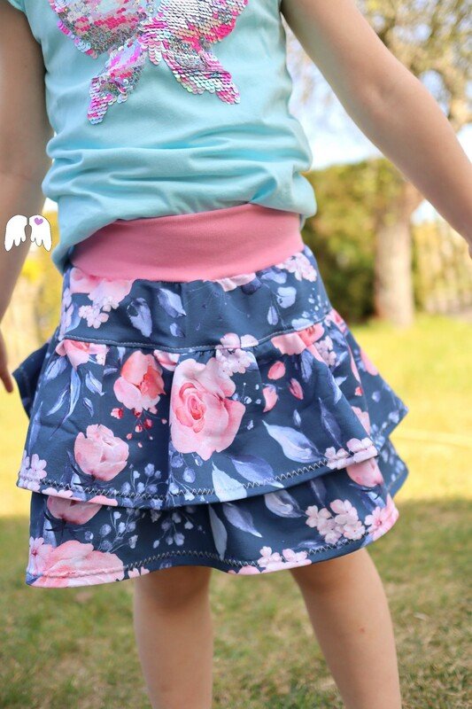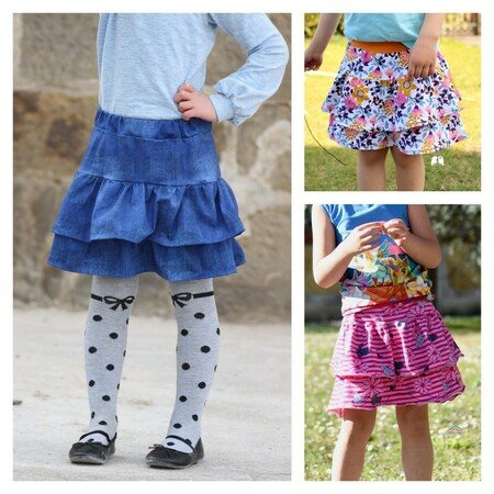 Chiara ist ein Schnitt für einen hübschen Rüschenrock, den du idealerweise aus Jersey nähen kannst – aber auch Webware oder Sommersweat sind möglich. Gr. 98 – 164 beinhaltet das Schnittmuster jeweils in Einzelgrößen, die du nach Körpergröße des Kindes nähen kannst.