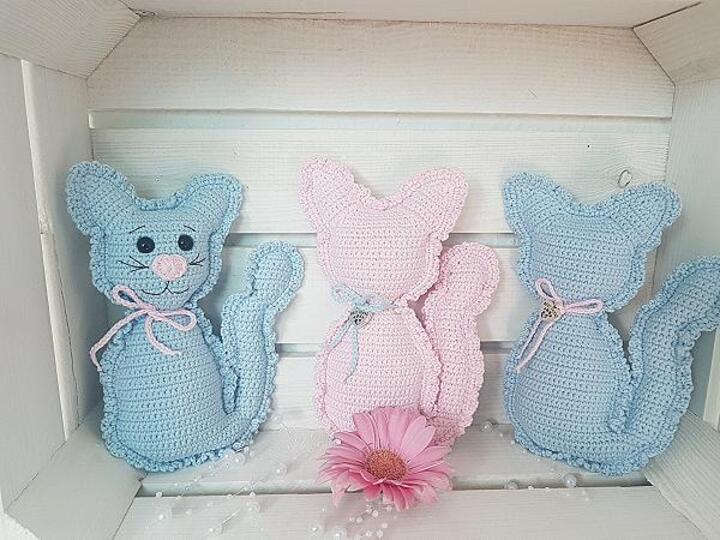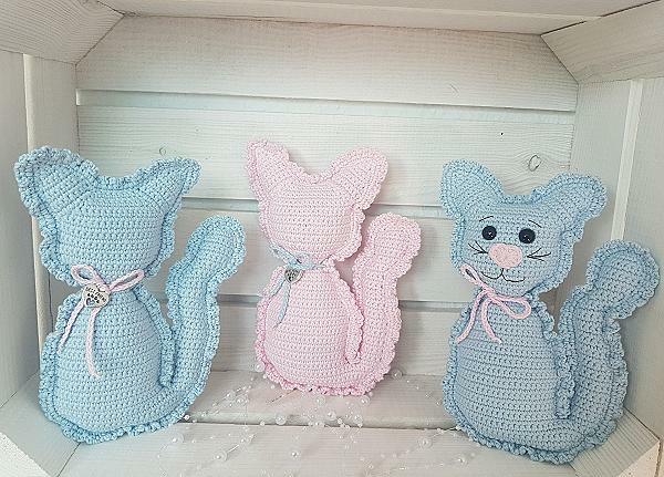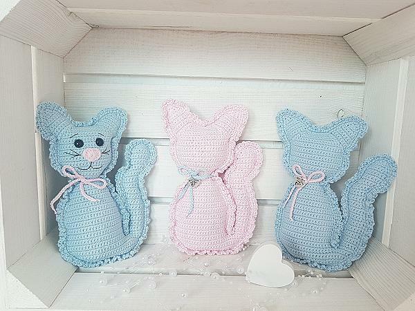Die Katzen eignen sich als kleines nettes Geschenk für Katzenliebhaber, Kinder oder für Babys zum Kuscheln und lieb haben, im Katzenkörper kann man auch eine Rassel oder Quitschi einarbeiten. Ideal auch für Tür und Fensterschmuck.