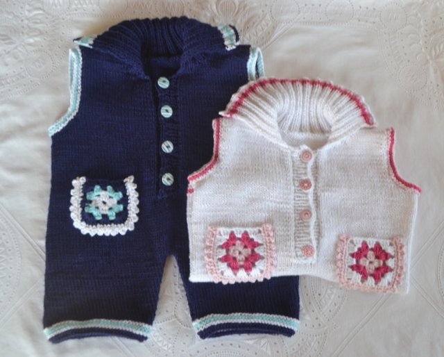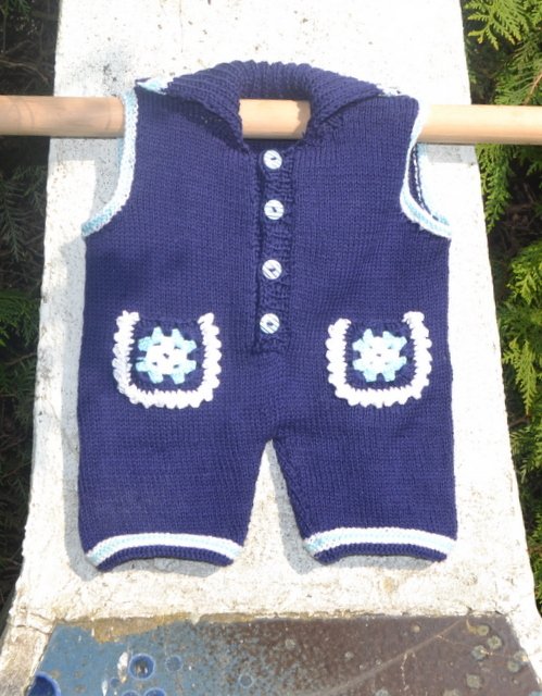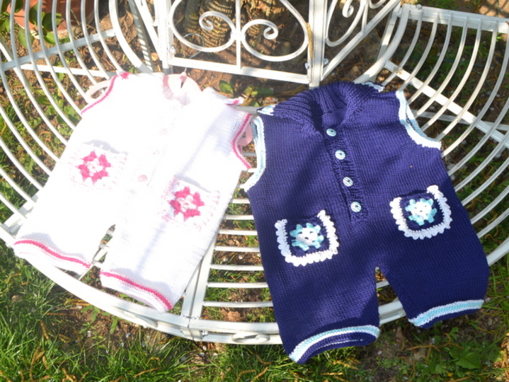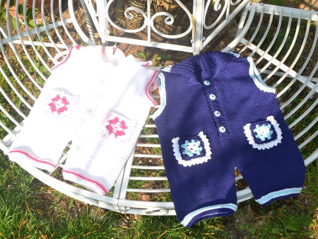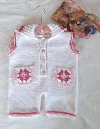 Strickanleitung für süße Babybody mit Knopfleiste und gehäkelten Taschen (optional) für Mädchen und Jungs