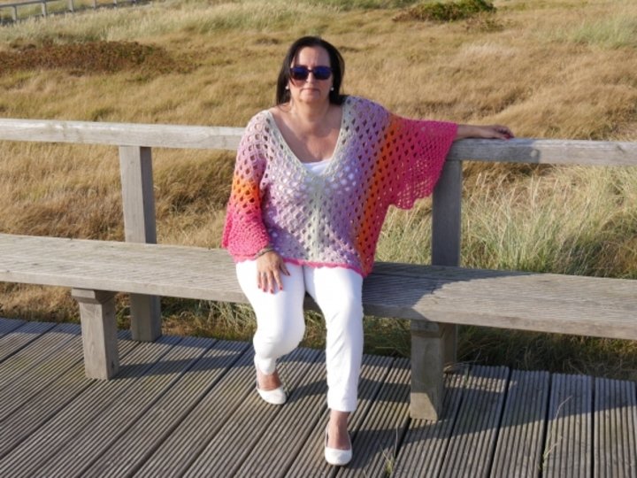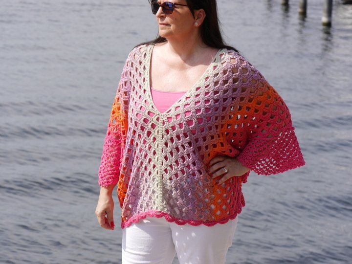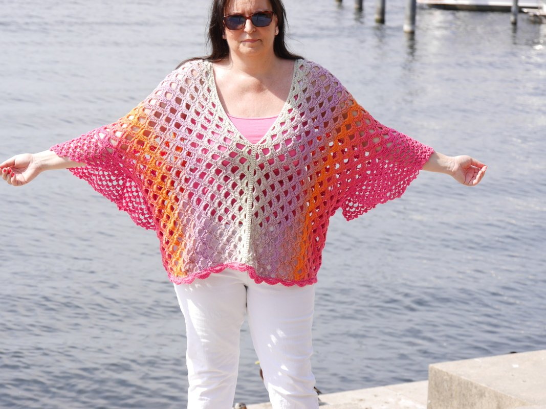 Ein schickes Netzshirt/Tunika im Fledermausstil für den Sommer.Luftig leicht und schön weit geschnitten umspielt es geschickt einige Pölsterchen die man vielleicht verstecken möchte.
