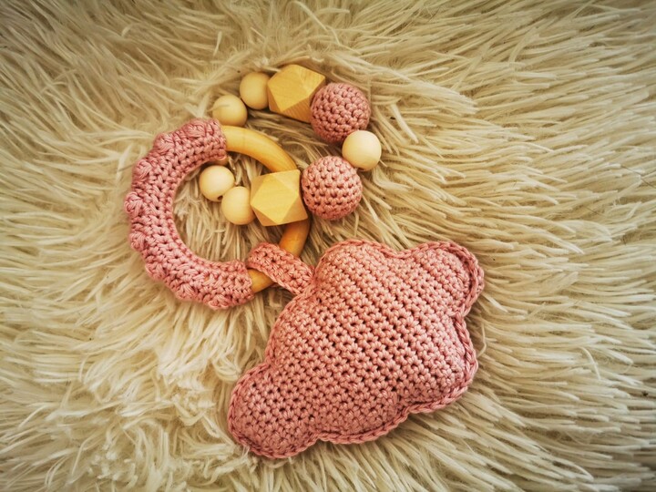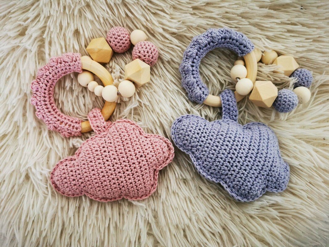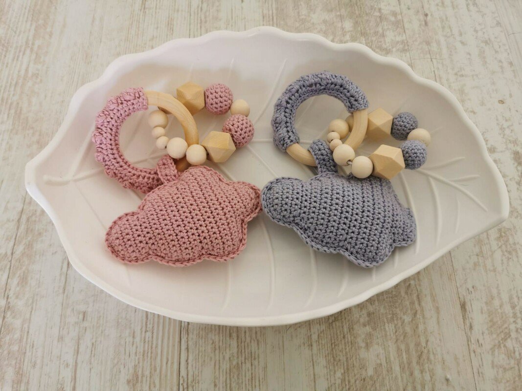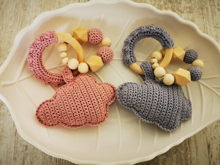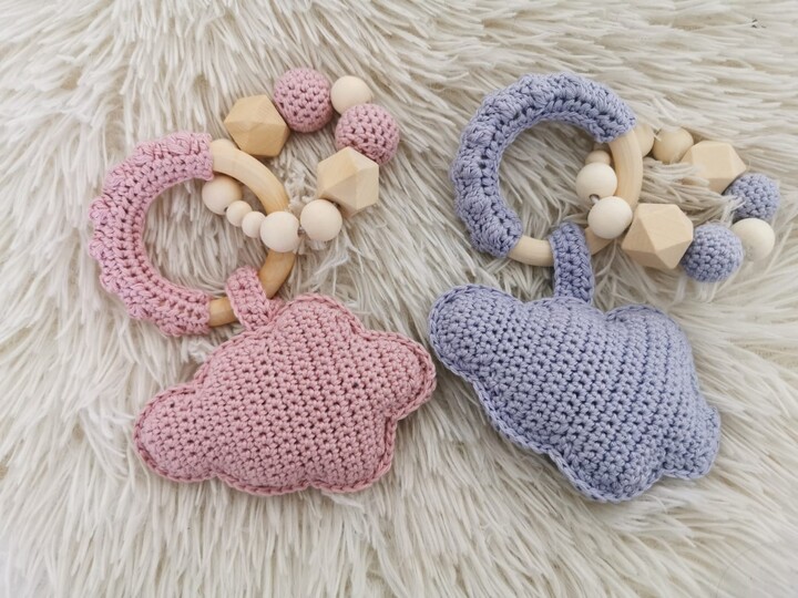 Mit Hilfe dieser Anleitung kannst du eine zauberhafte Babyrassel nacharbeiten. Die Rassel regt durch die optimale Mischung aus naturbelassenem Holz und 100 % Baumwolle Babys Sinne an. In der Babyrassel ist zusätzlich eine Rasseldose eingearbeitet. Diese süße Wolke wird der Hingucker auf jeder Babyparty oder ist ein optimales Geschenk zur Geburt, zum Geburtstag oder zu zahlreichen anderen Anlässen.