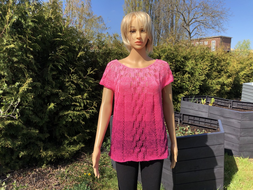 Diese luftige Tunika wird in Runden von oben nach unten gestrickt. Nach unten hin wird die Tunika etwas ausgestellt, so dass sie jede Figur umschmeichelt..