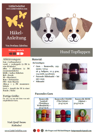 Sie dürfen Topflappen, die nach dieser Anleitung gehäkelt sind, verkaufen (lesen Sie bitte die Bedingungen in der Anleitung).