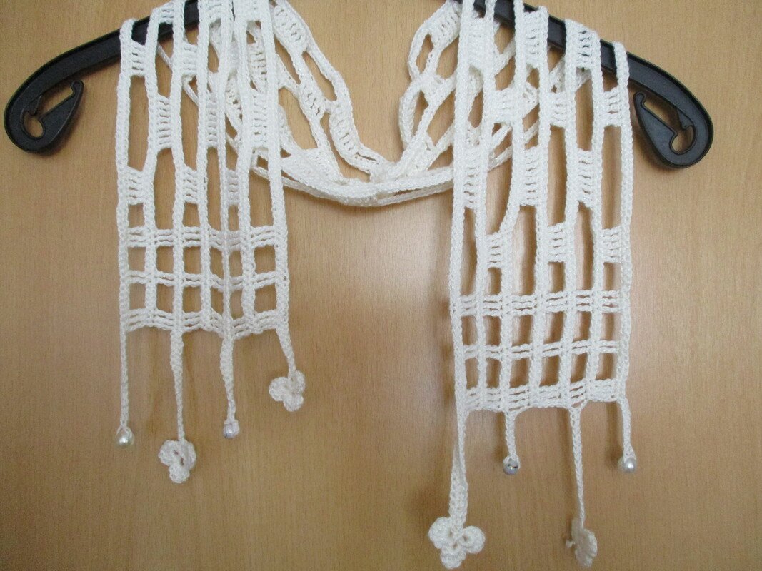 Er kann mit jeder beliebigen Wolle gehäkelt werden, je dünner die Wolle um so filigraner wird der Schal. Die Länge des Schals kann man beliebig verlängern oder verkürzen, ebenso die Breite.