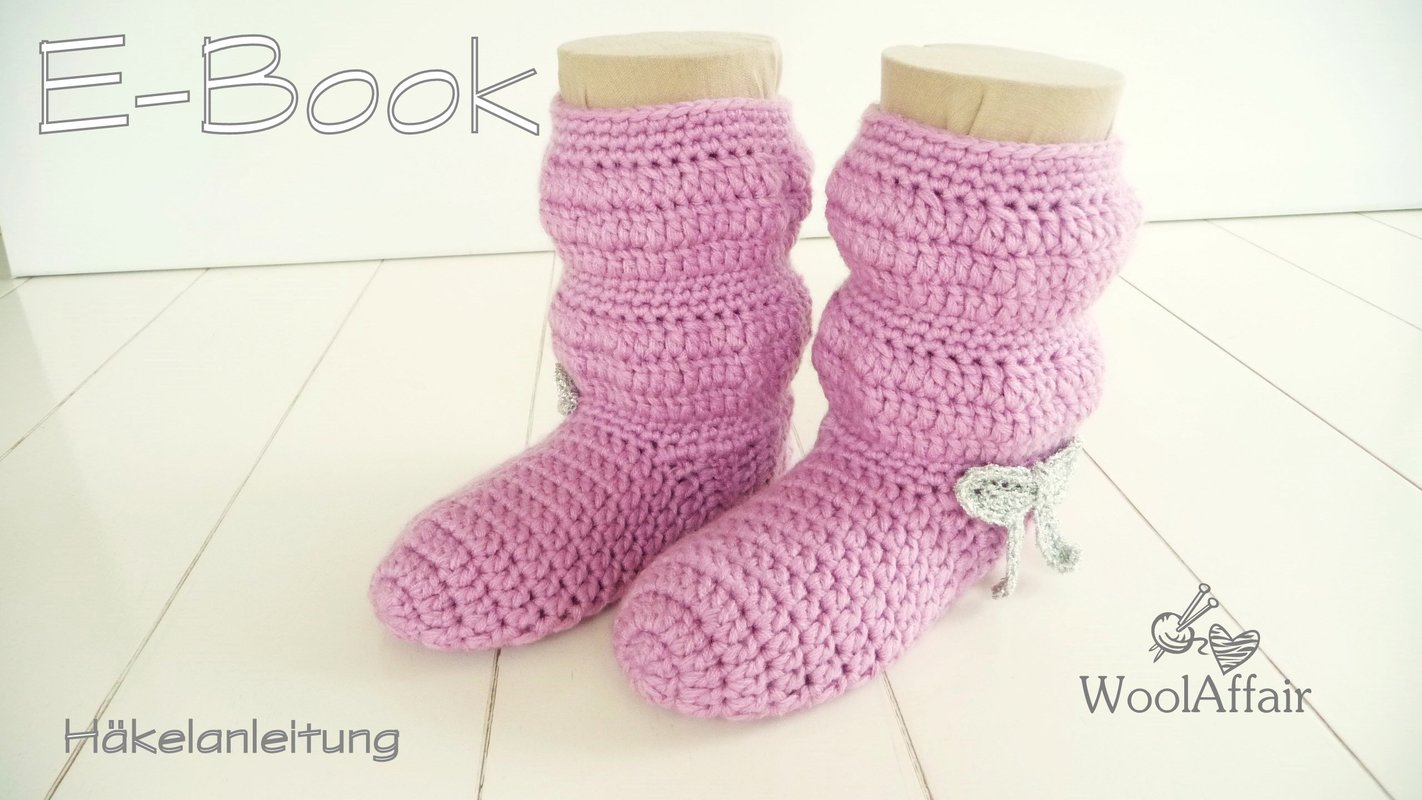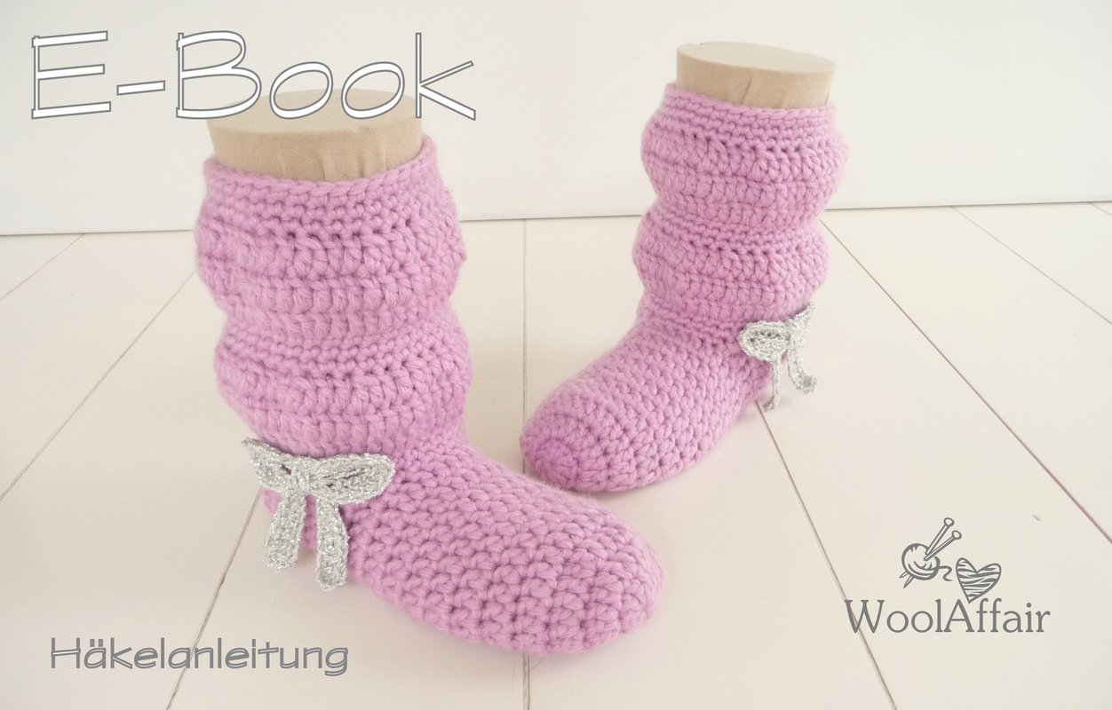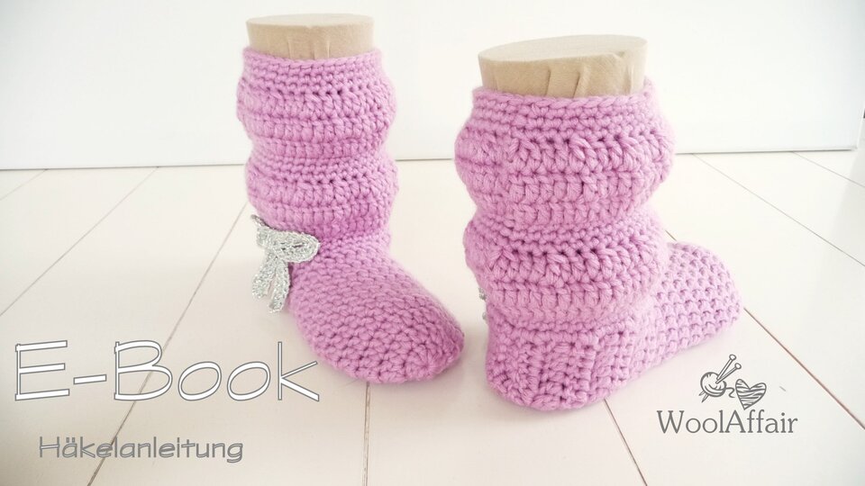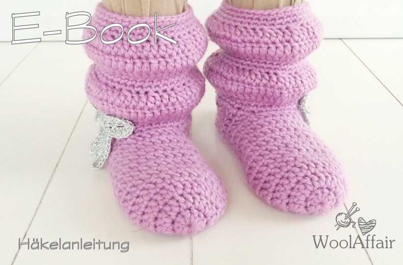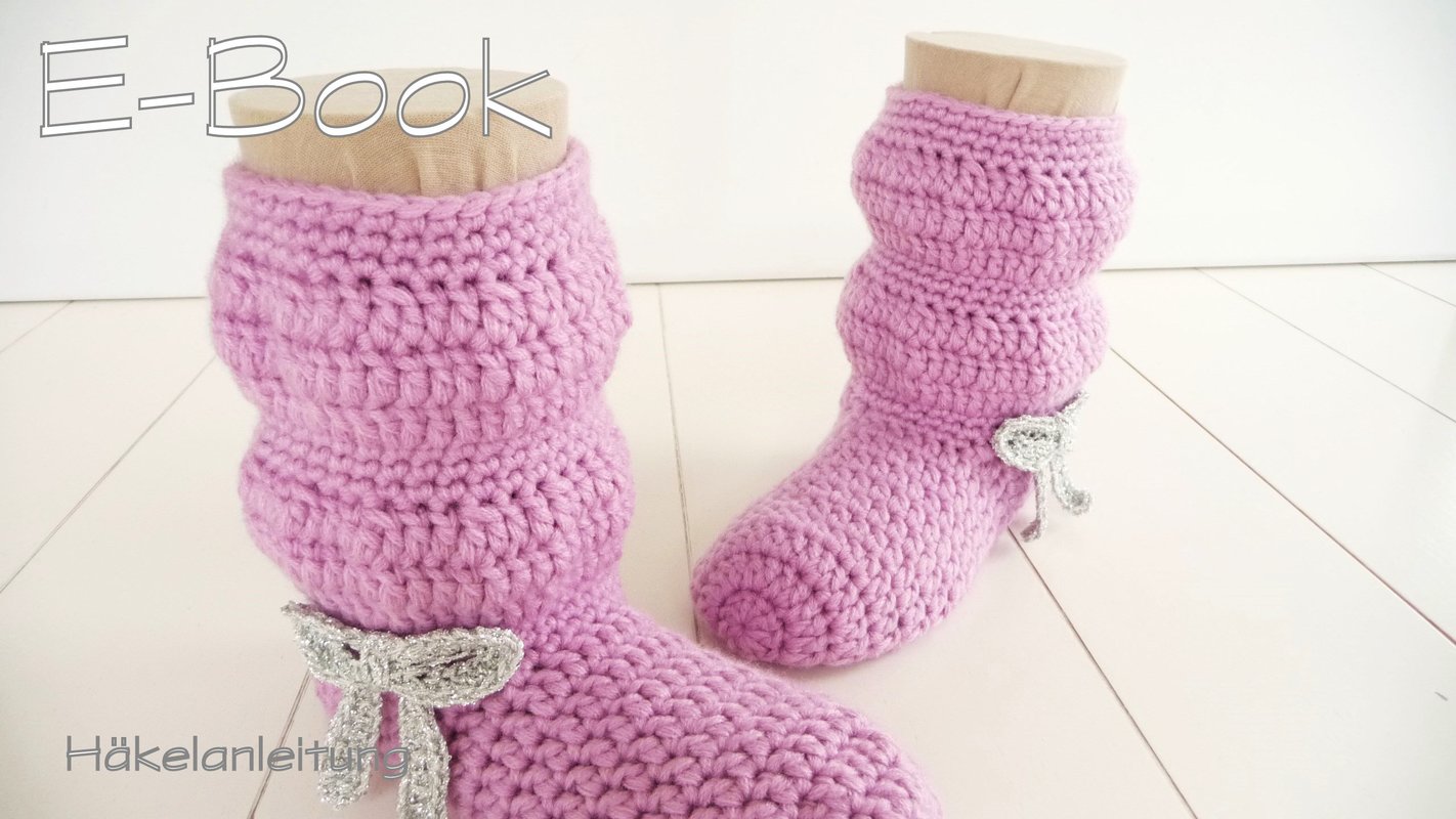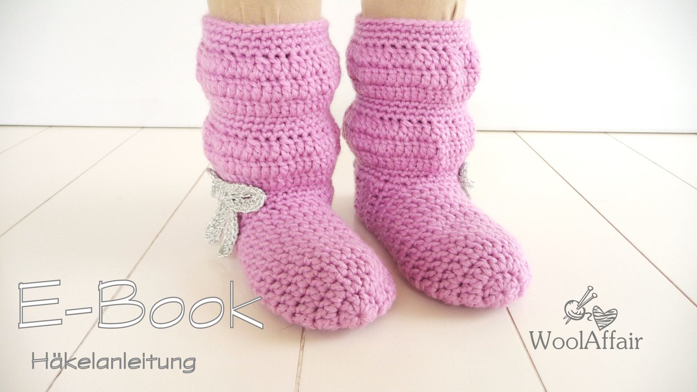 Supersüße Häkelstiefelchen mit Glitzerschleife für Kindergarten- bzw. Schulkinder